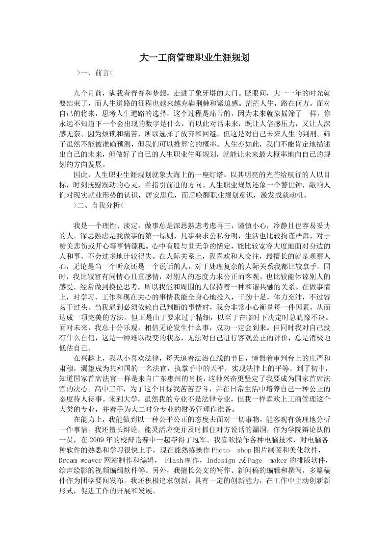 工商管理专业大学生职业生涯规划1