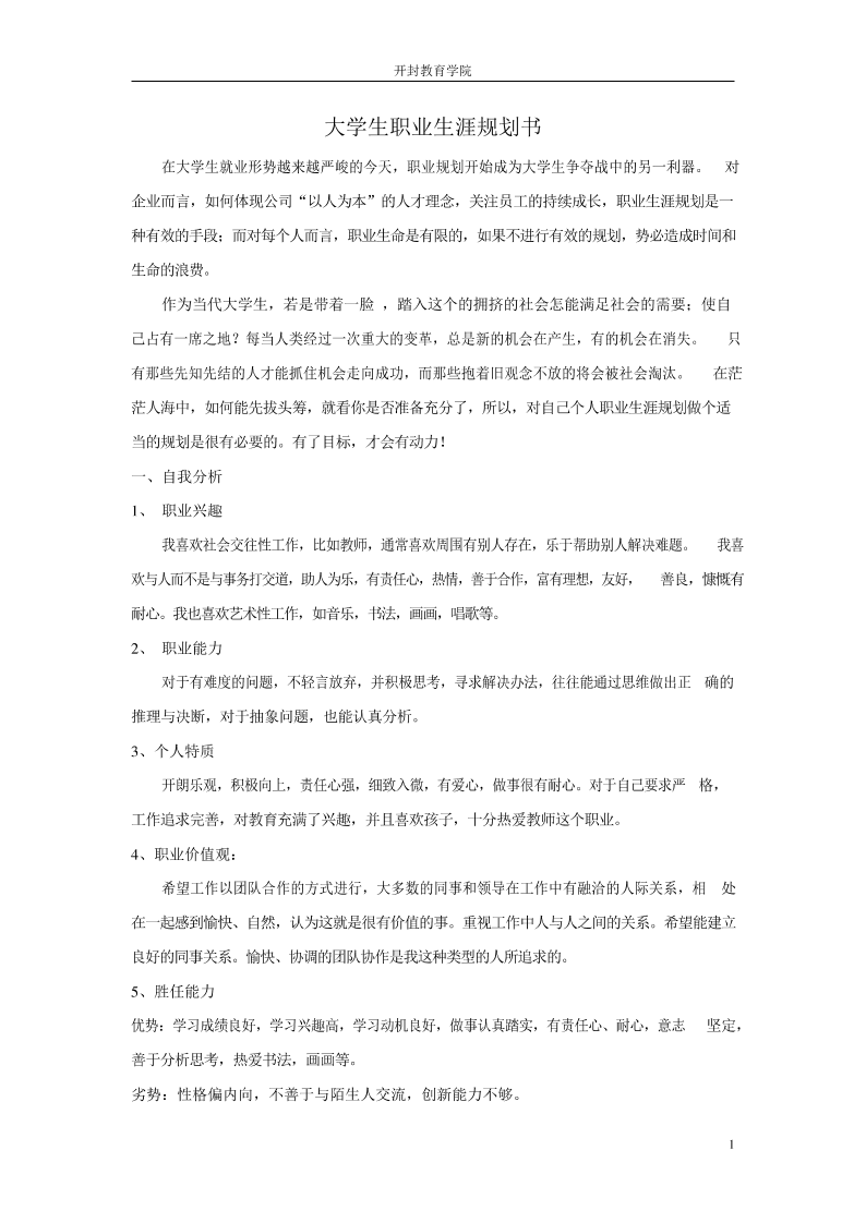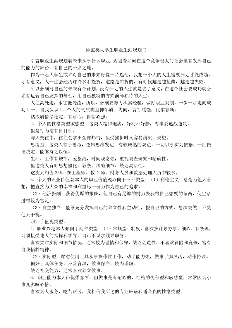 师范类大学生职业生涯规划书_1