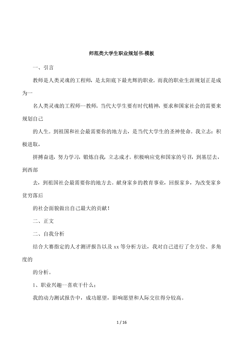 师范类大学生职业规划书-模板