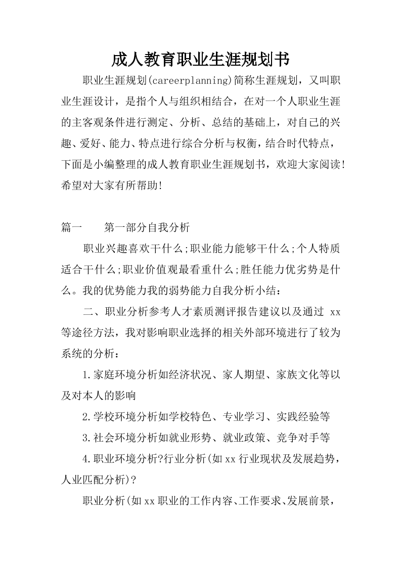 成人教育职业生涯规划书