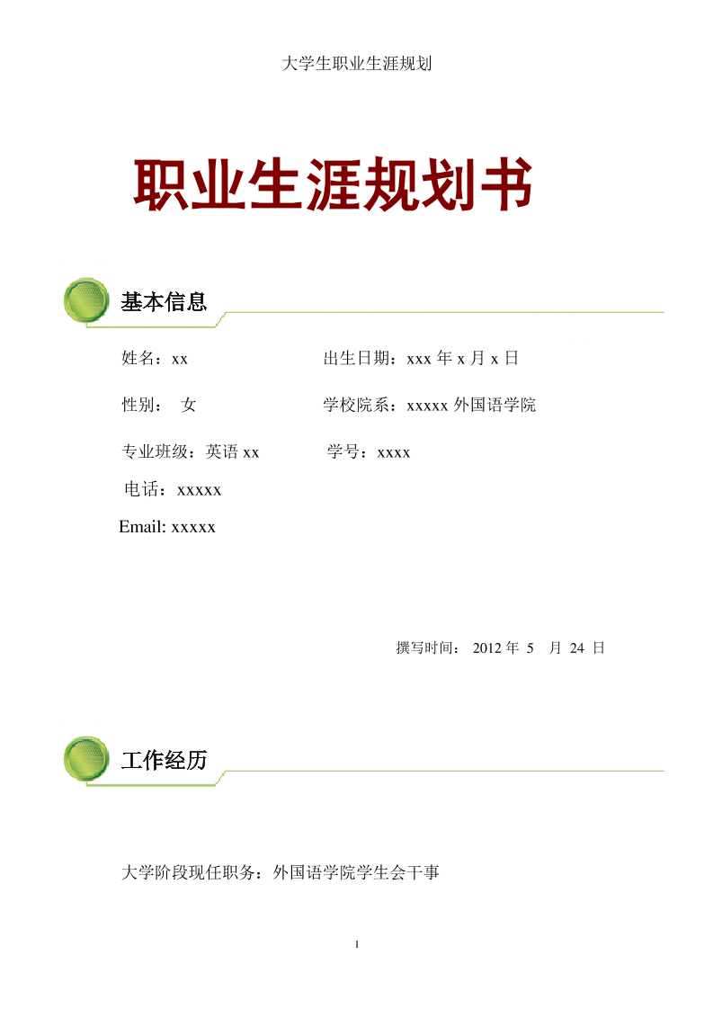 生涯规划书模板
