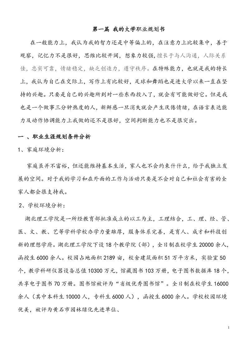 英语专业职业生涯规划书(1)