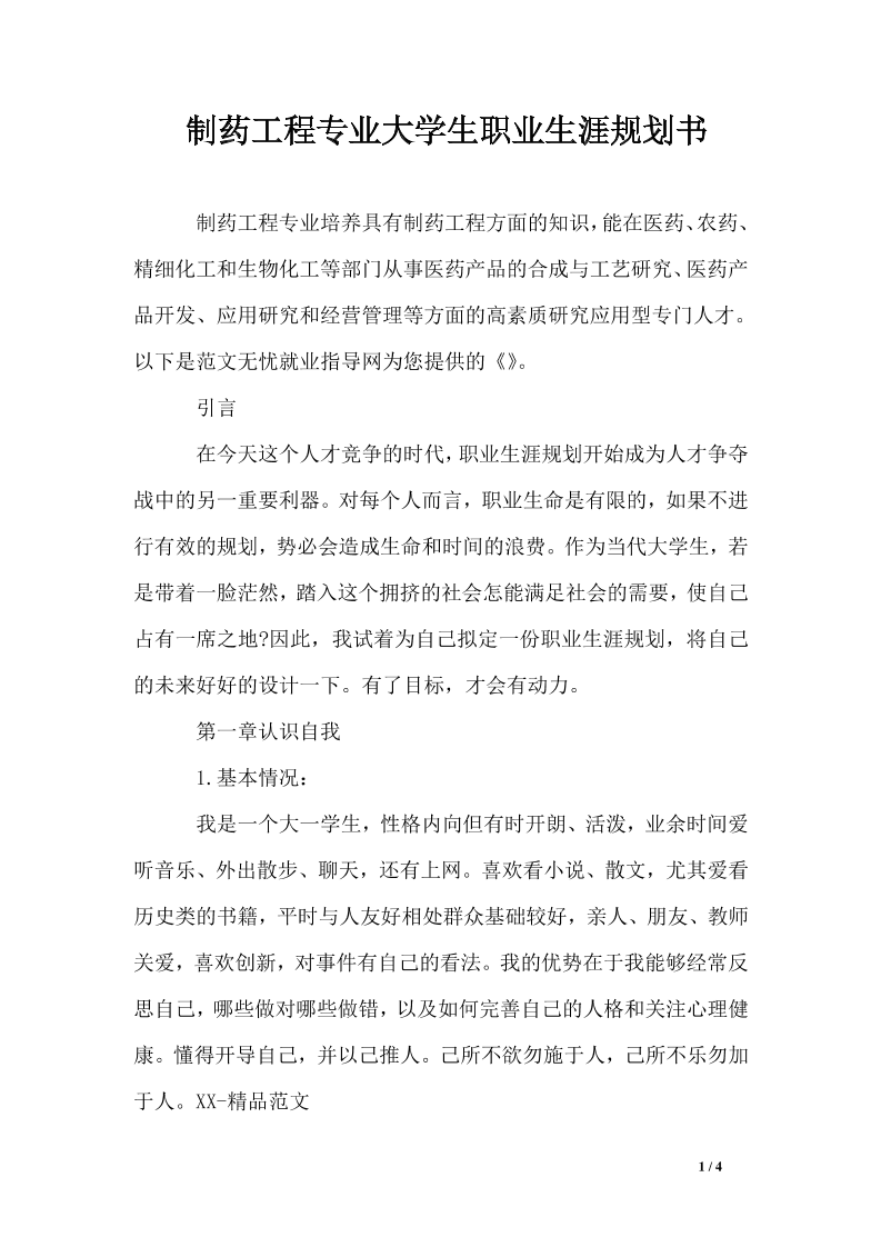 制药工程专业大学生职业生涯规划书