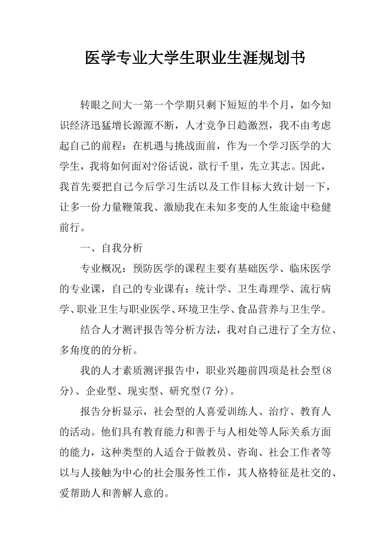医学专业大学生职业生涯规划书