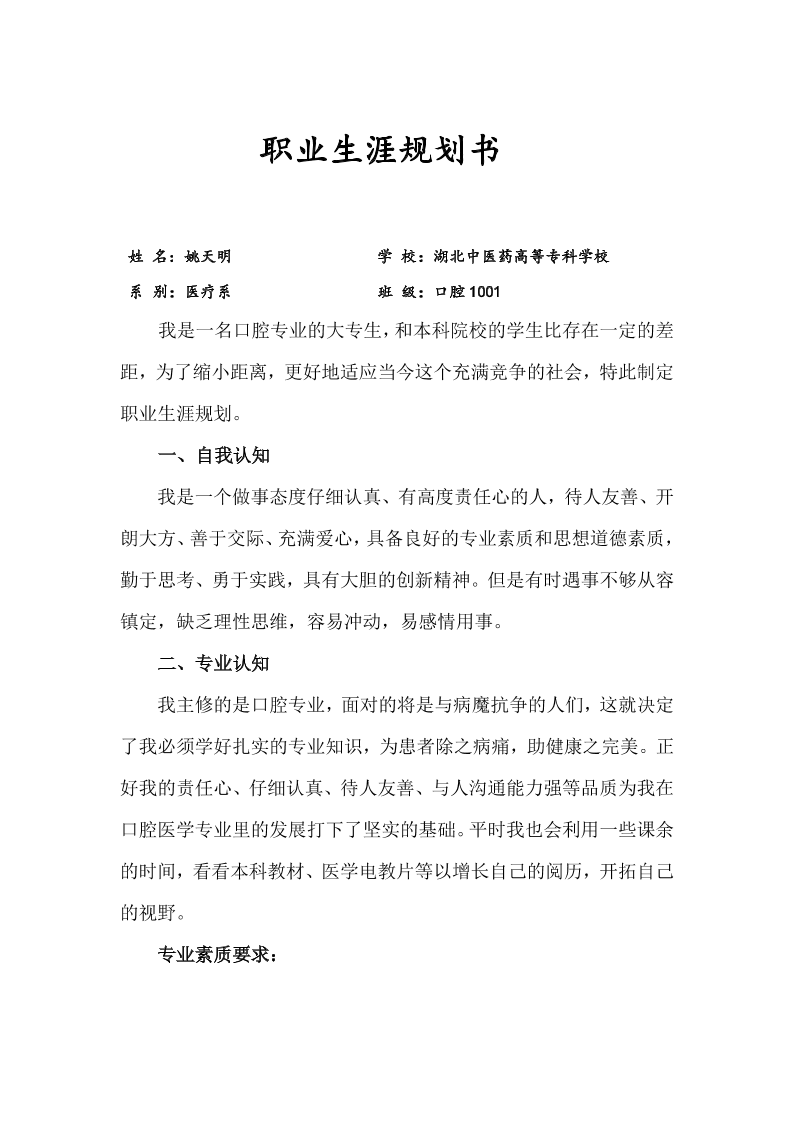 湖北中医药高等专科学校职业生涯规划大赛(姚天明)