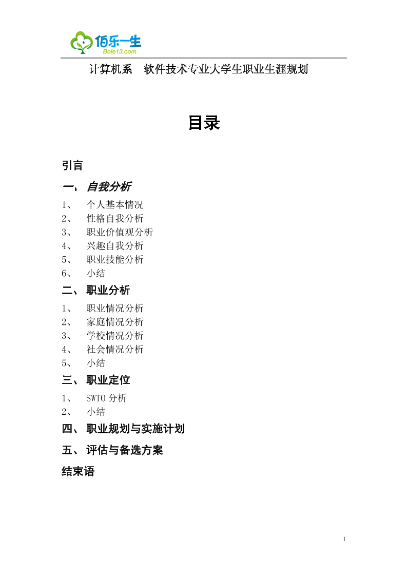 软件技术职业生涯规划书