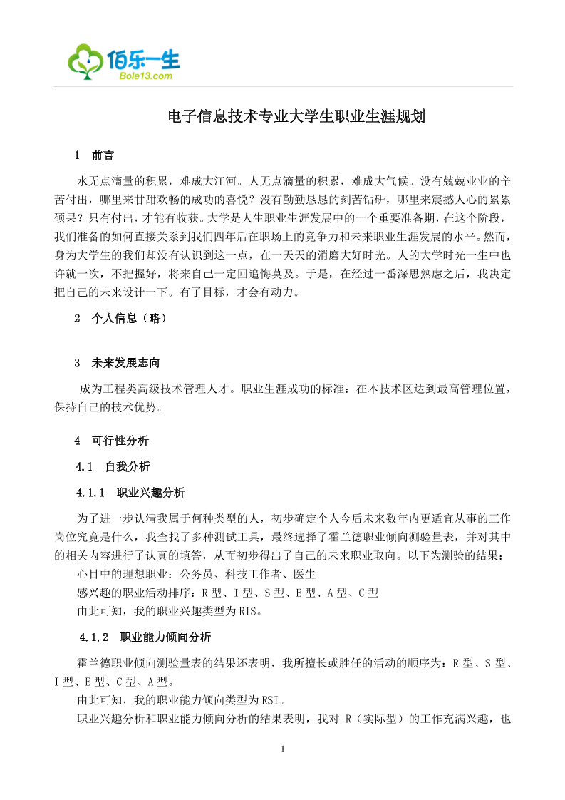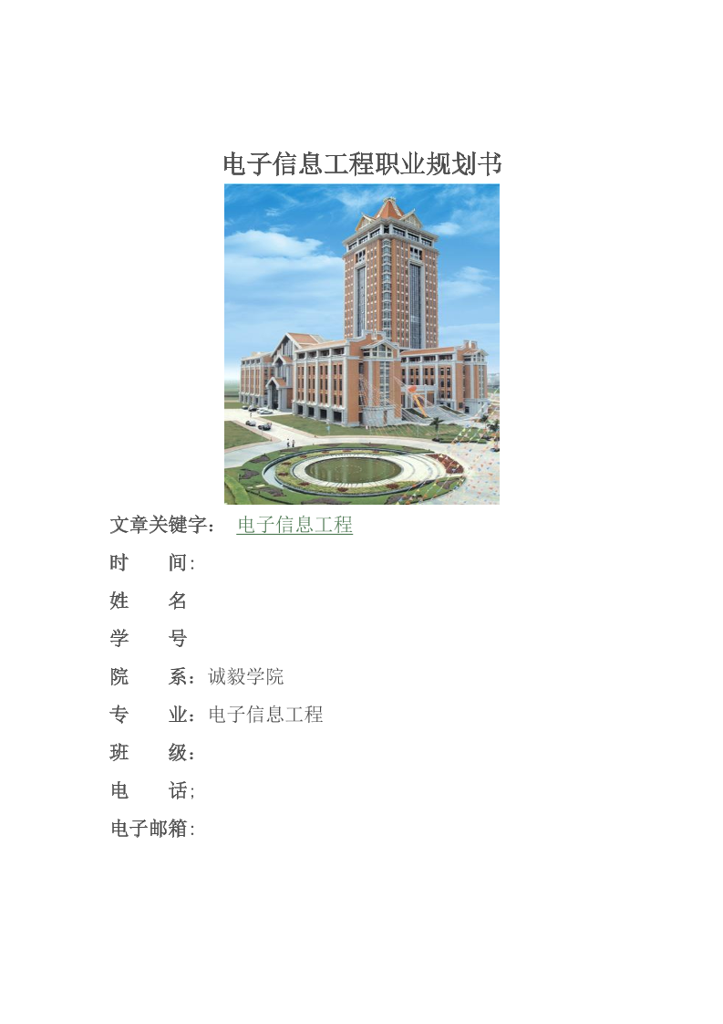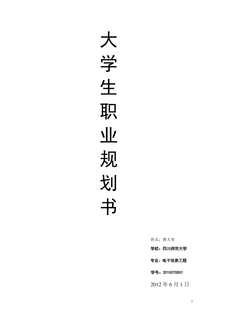 职业生涯规划书-信息科学技术学院-电子信息工程2班-2011162004-晁金龙