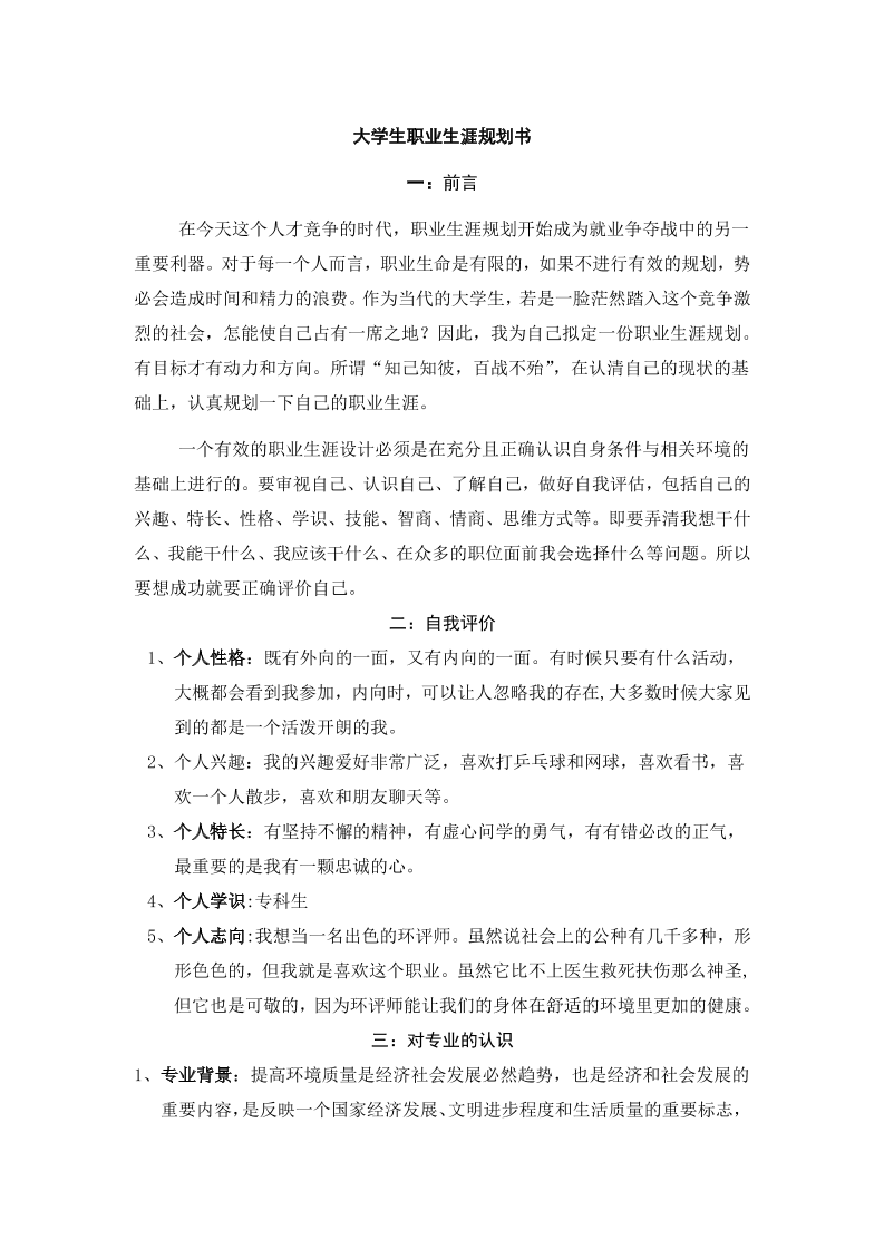 大学生职业生涯规划书(环境监测方向)