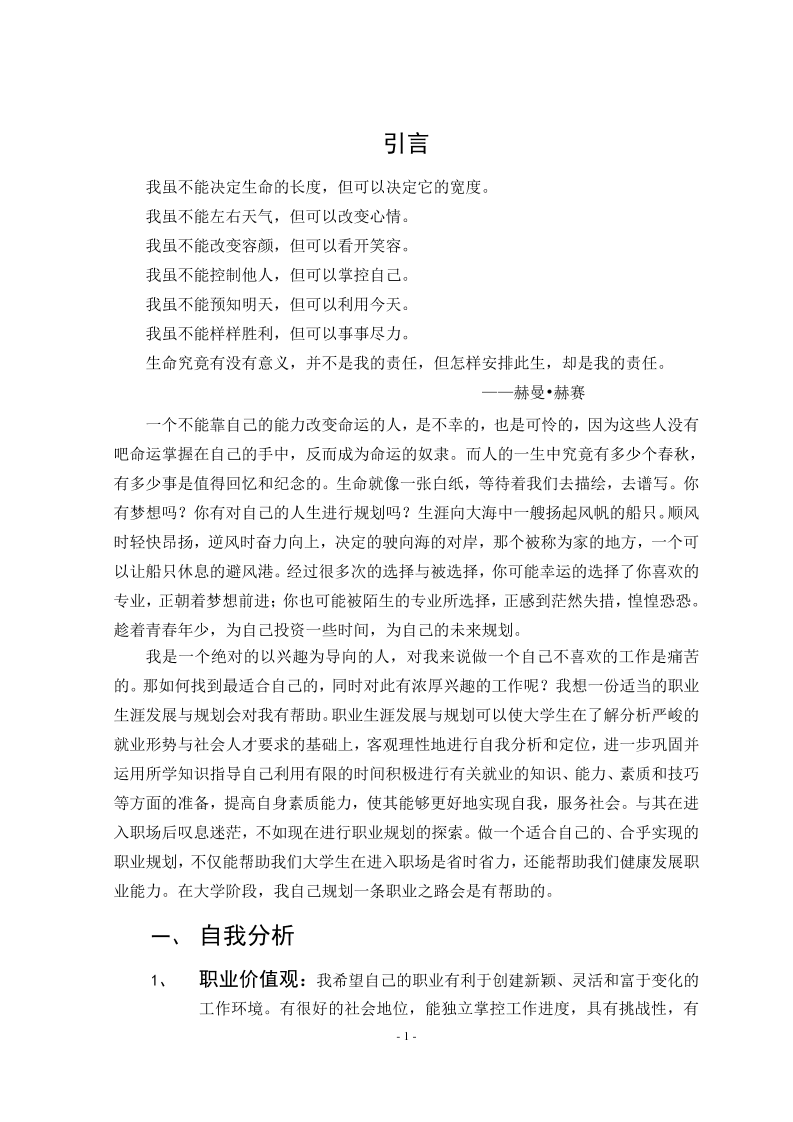 毕业论文---我的职业生涯规划书范文
