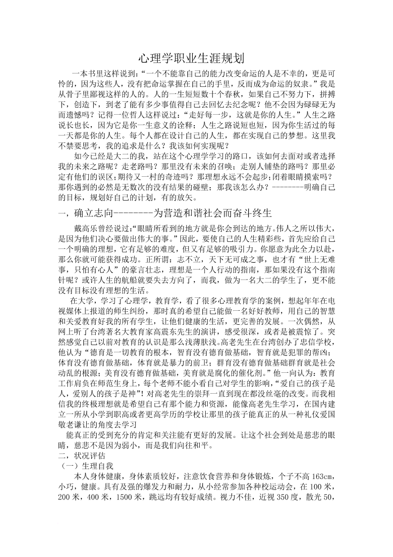心理学专业职业生涯规划书