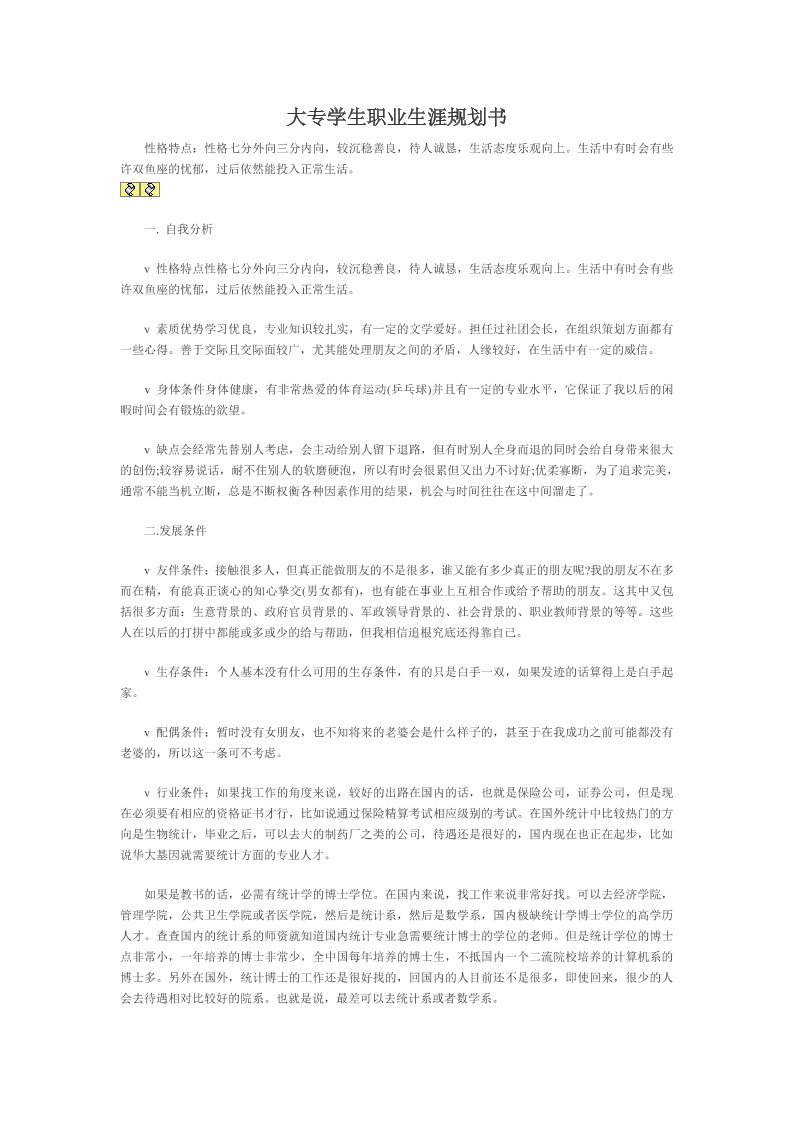 大学生职业生涯规划书(统计学)