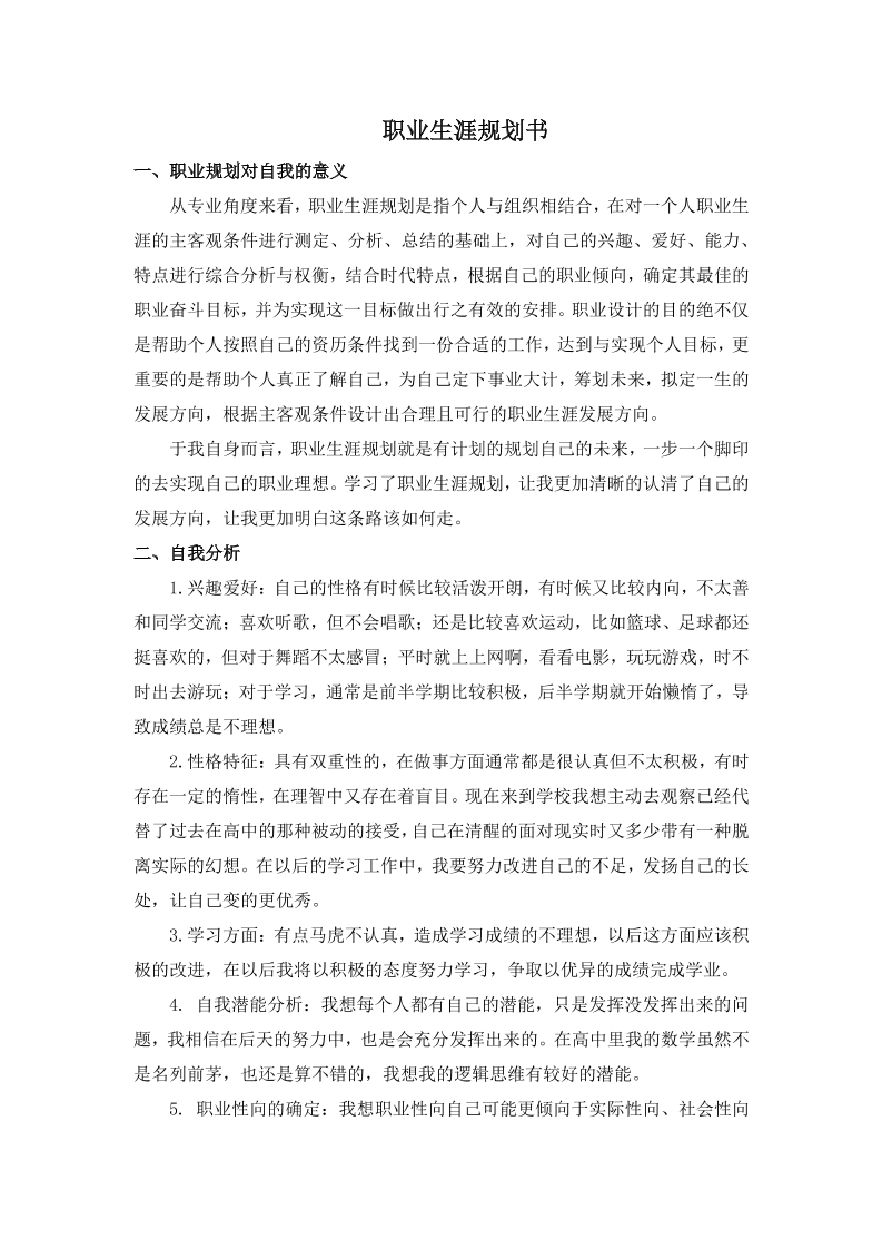 大学学业生涯规划书(DOC)