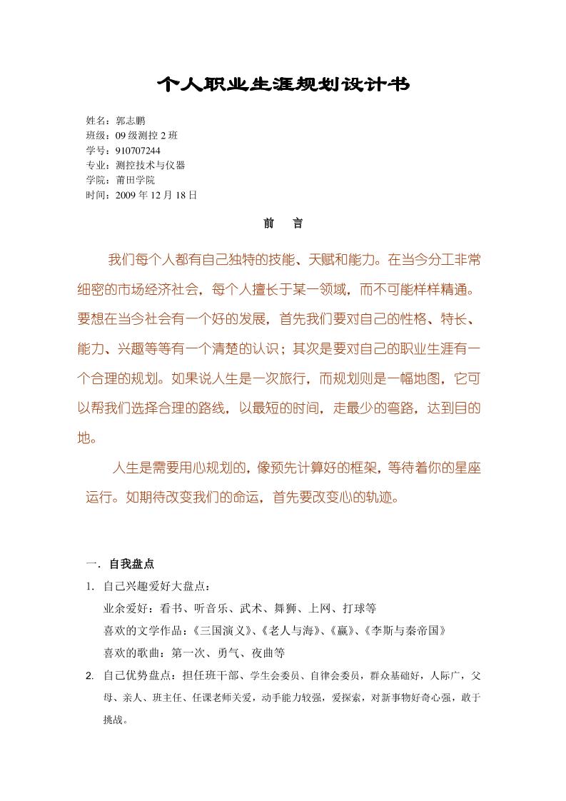 莆田学院电信系郭志鹏-职业生涯规划书