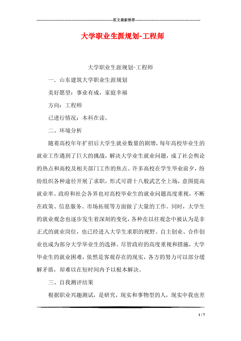 大学职业生涯规划-工程师