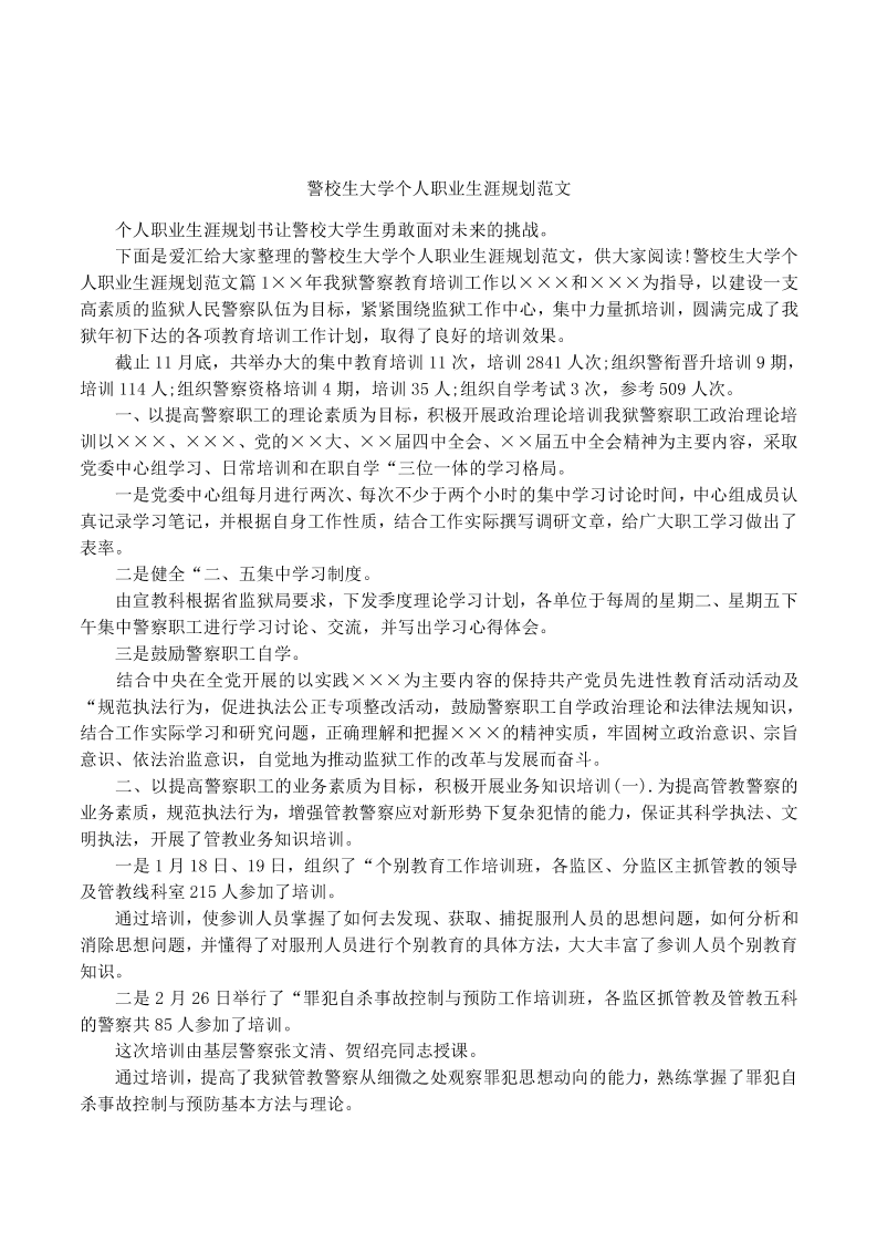 警校生大学个人职业生涯规划范文