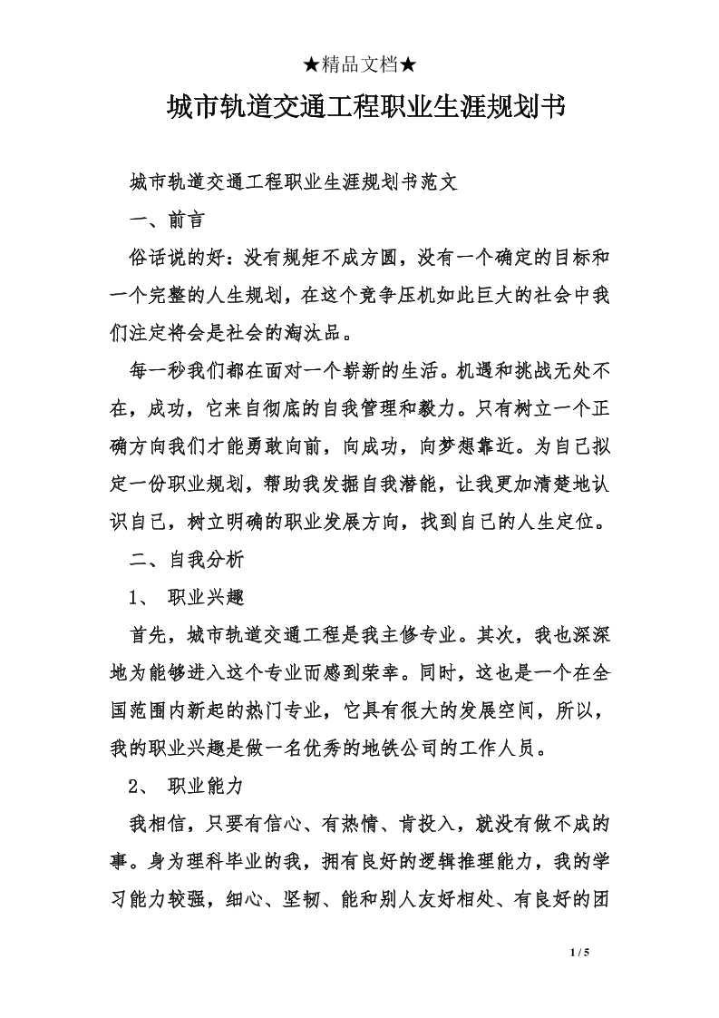 城市轨道交通工程职业规划书