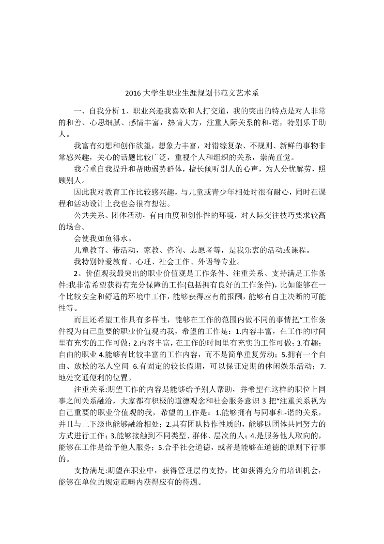 大学生职业生涯规划书范文艺术系
