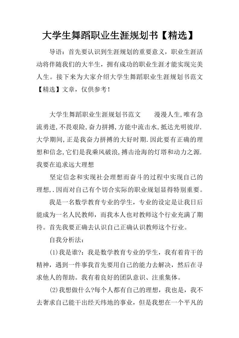 大学生舞蹈职业生涯规划书【精选】