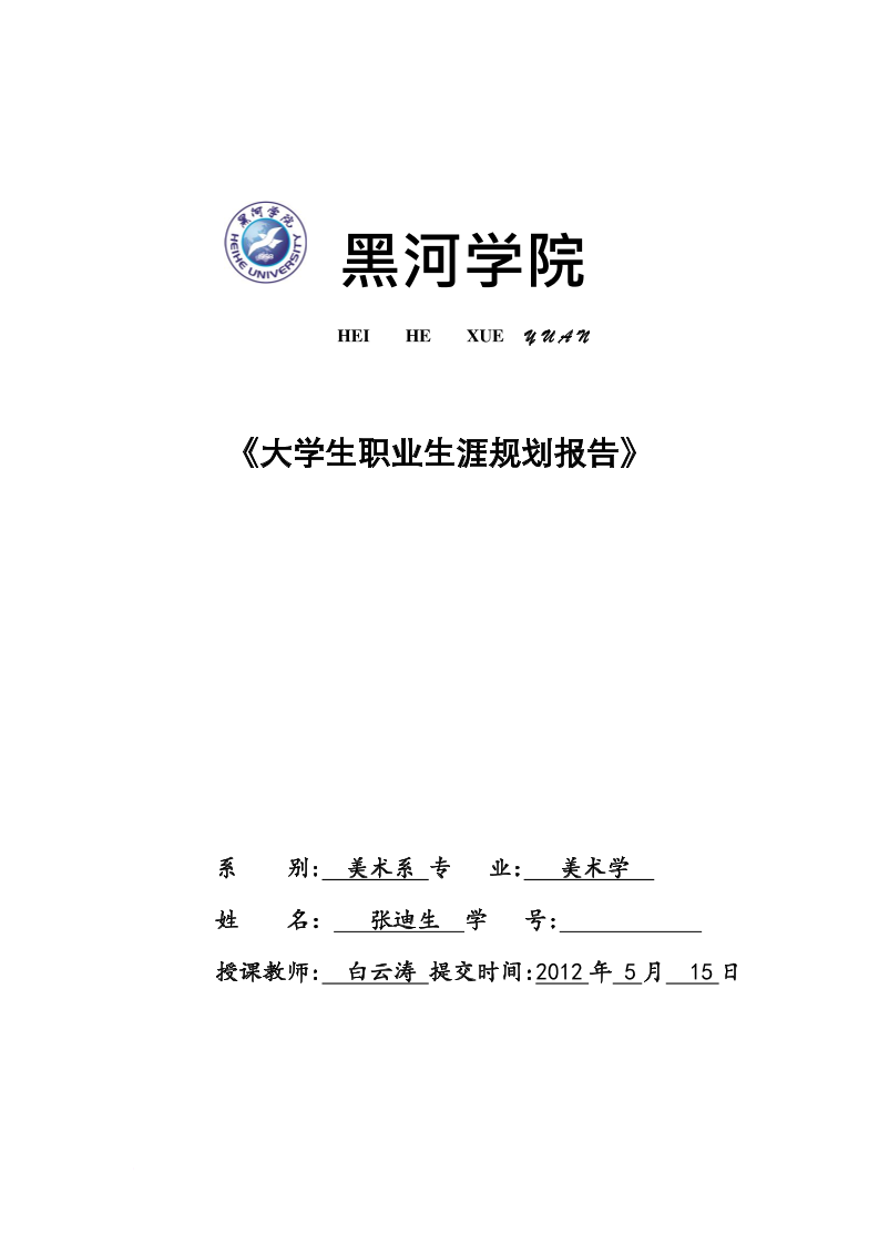 美术学大学生职业生涯规划————黑河学院
