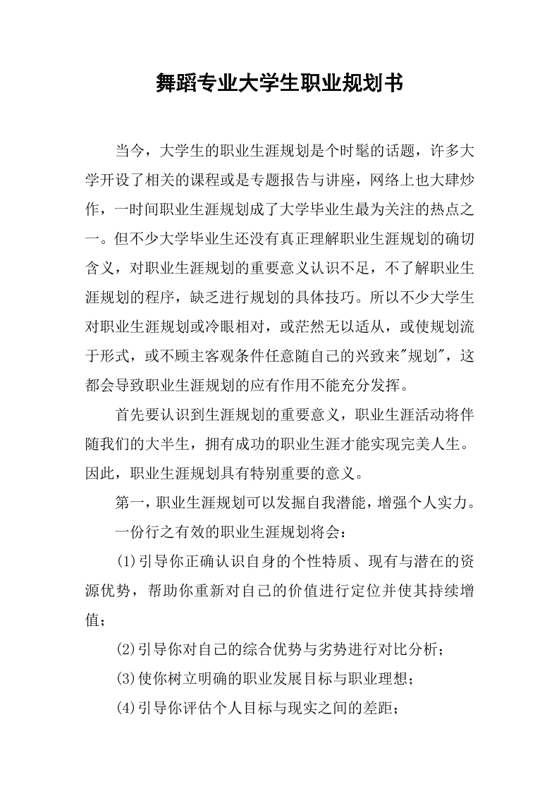 舞蹈专业大学生职业规划书