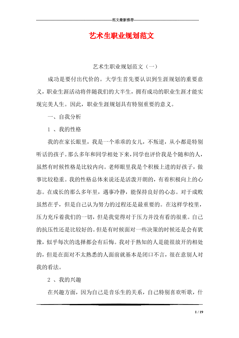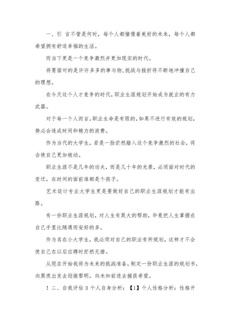 大学生职业生涯规划书范文艺术类