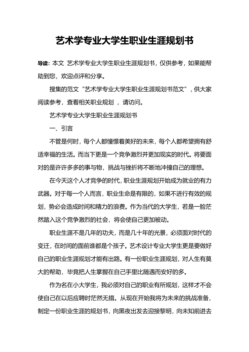 艺术生职业规划范文