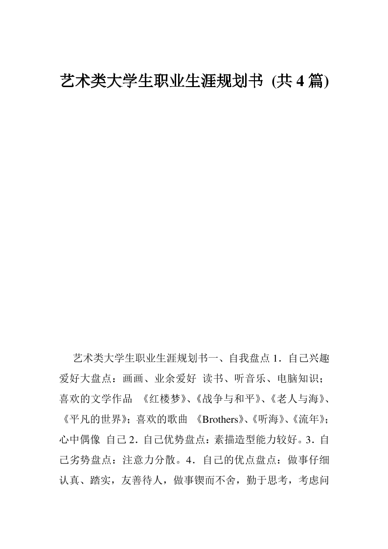 艺术类大学生职业生涯规划书-(共4篇)