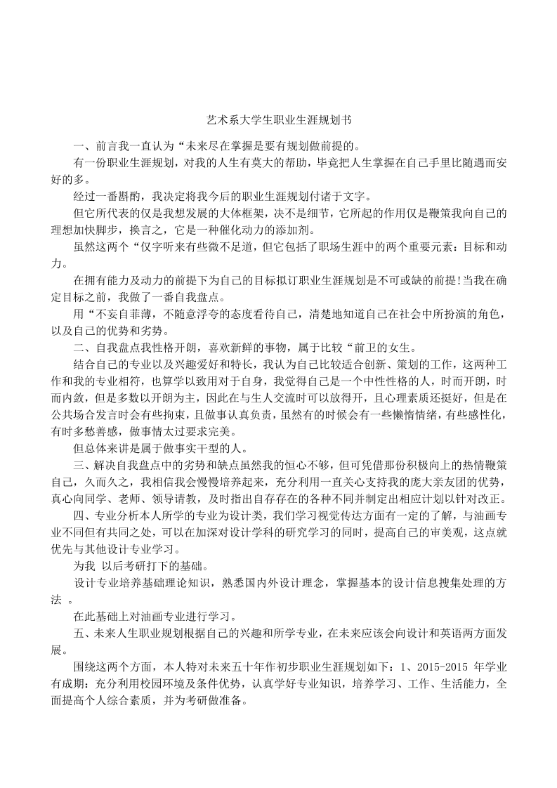 艺术系大学生职业生涯规划书 (1)