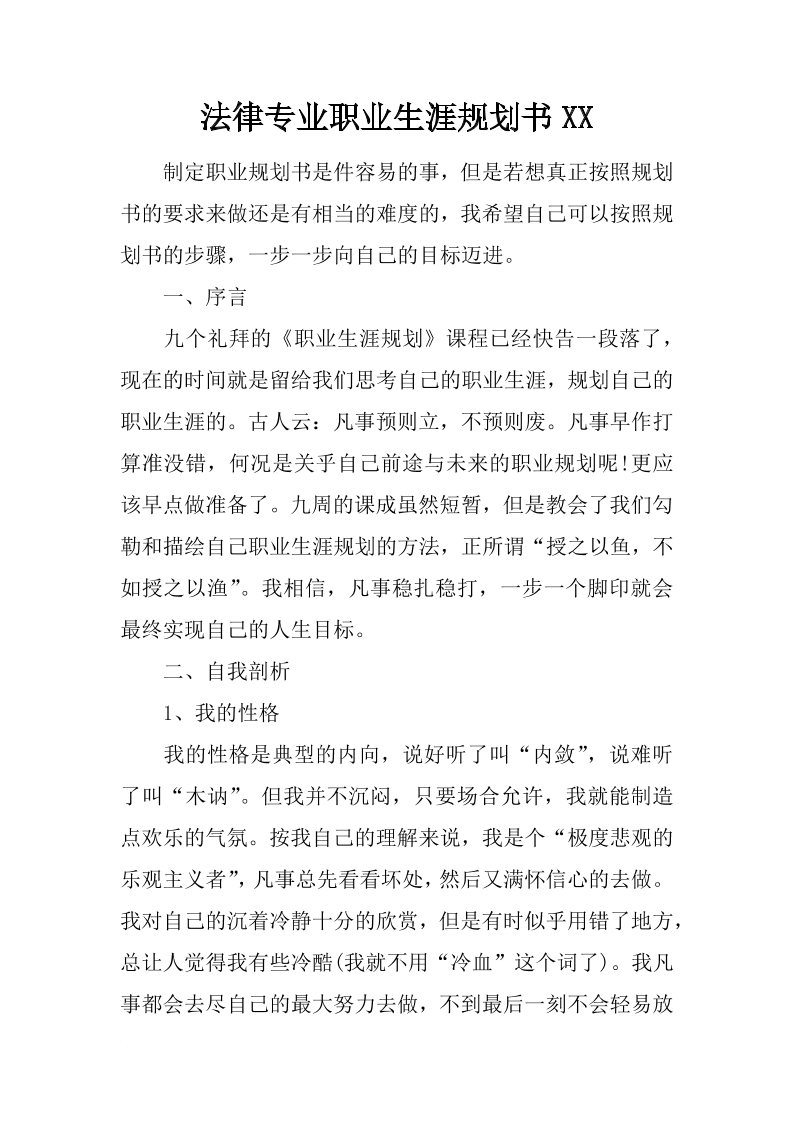 法律专业职业生涯规划书XX