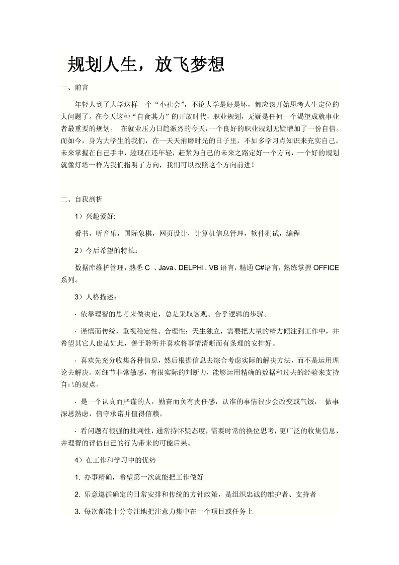 计算机与信息科学系职业生涯规划书