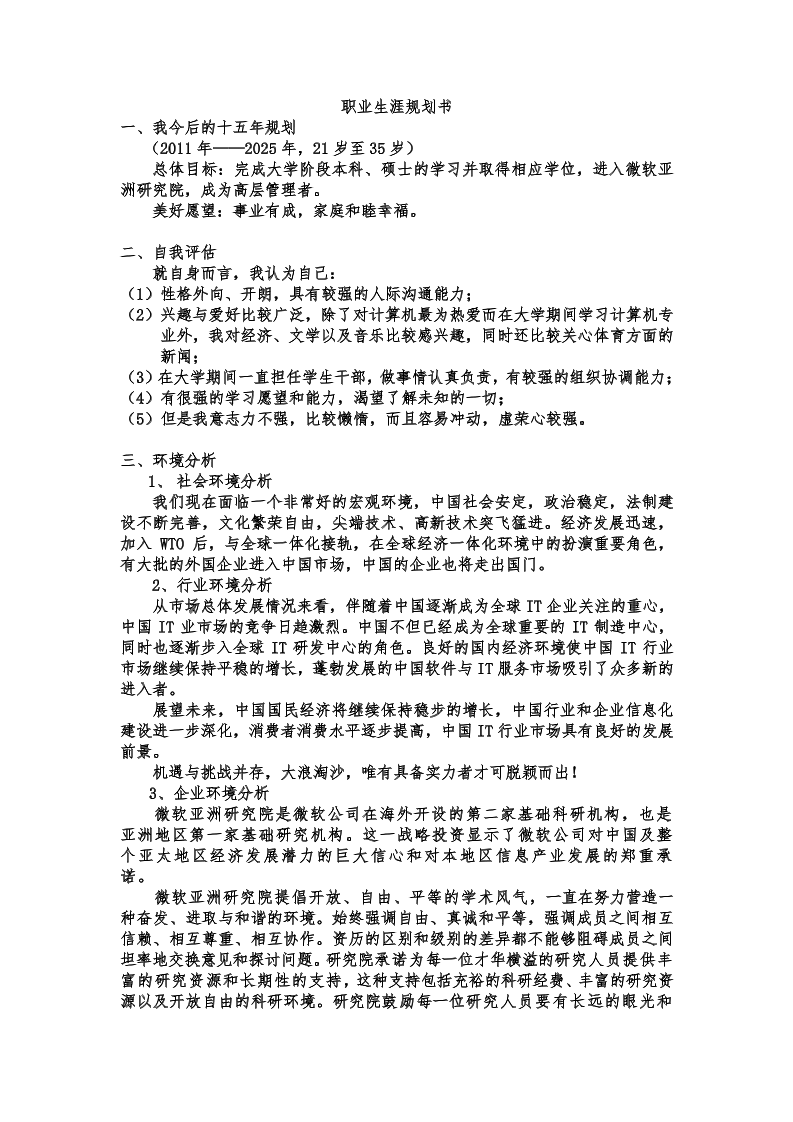计算机专业职业生涯规划书