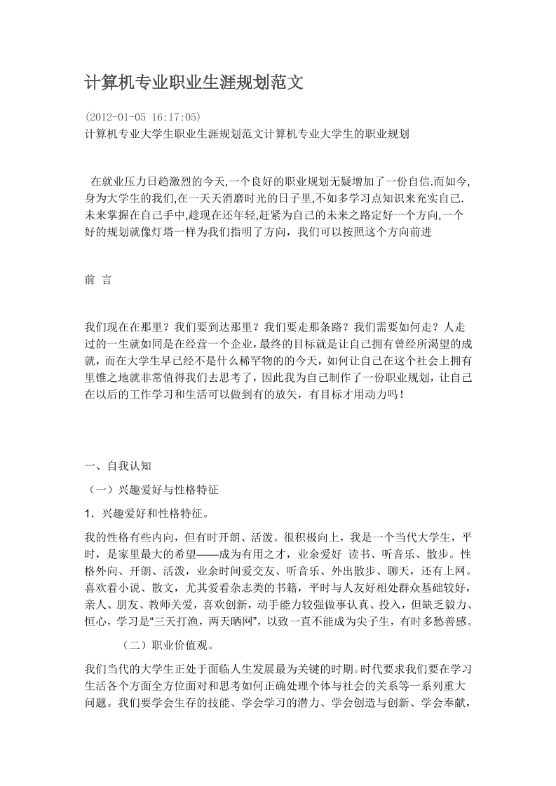 计算机专业的职业生涯规划书范文
