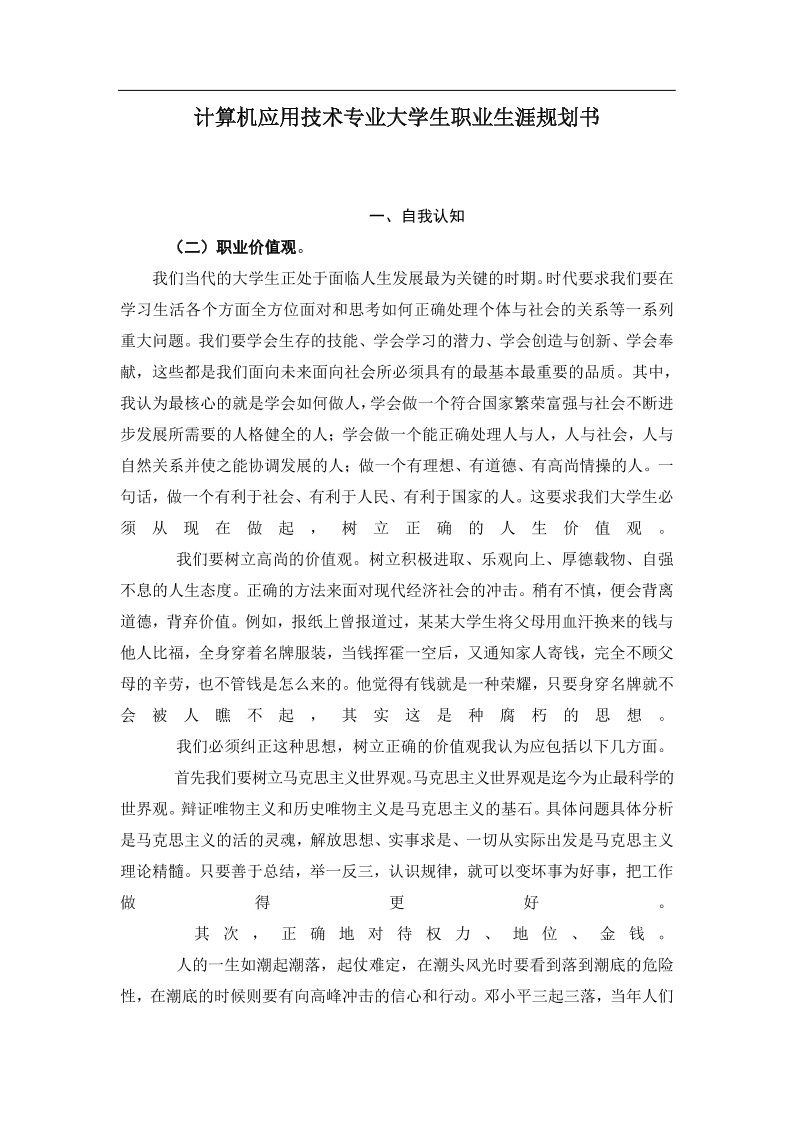 计算机应用技术专业大学生职业生涯规划书 (1)